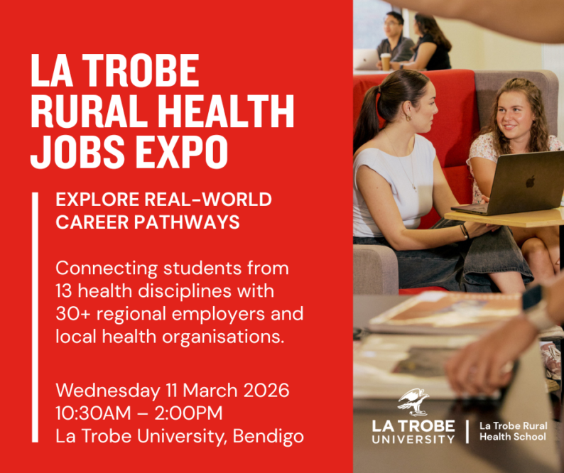 Join us for the La Trobe Rural Health School Jobs Expo at our Bendigo campus on Wednesday 11 March 2026.