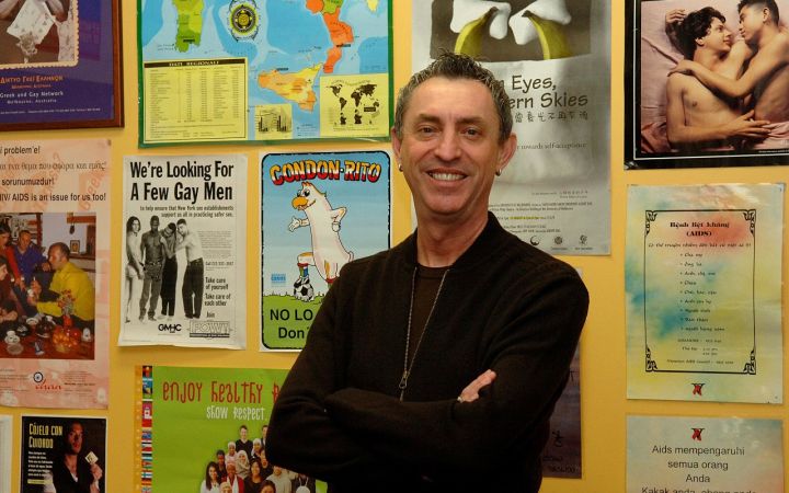 Pictured is Professor Gary Dowsett and a display of HIV prevention materials from Australia and the Asia-Pacific region.