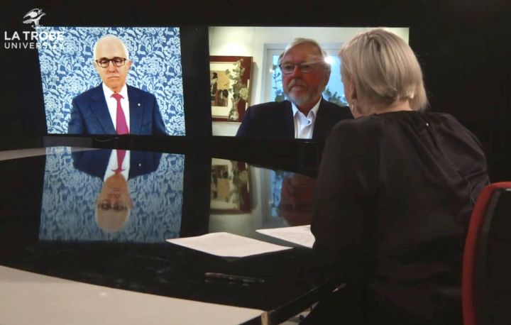 To discuss the issues and complexities, La Trobe University’s Ideas and Society Program and La Trobe Asia hosted a live broadcast with Australia’s former prime ministers Kevin Rudd, currently the president of the Asia Society in New York, and Malcolm Turnbull, who is responsible for Australia’s first cyber security strategy. The conversation was hosted by Dr Rebecca Strating, executive director of La Trobe Asia and an expert in international relations.