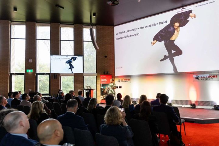 To kick off the night’s partner showcases, Dr Ebonie Rio, Senior Clinical Research Fellow, took the stage to discuss the University’s long-standing collaboration with The Australian Ballet. Going from strength to strength since 2015, the partnership spans across many facets of our ecosystem including research, student recruitment and brand, industry engagement, sport and more.