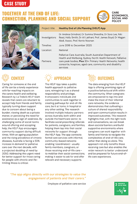 The act of receiving or giving care doesn’t happen in a vacuum; and understanding how ‘care’ exists in and impacts on broader Australian society is crucial to its sustainability.